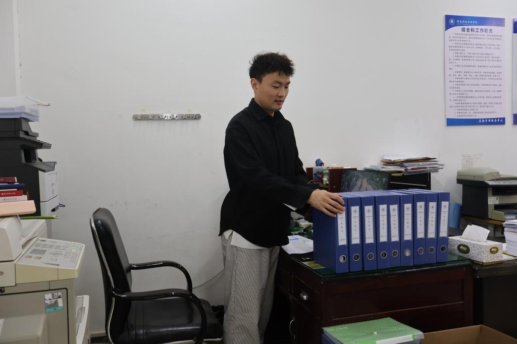 在完善现有合同的基础上,他着眼长远,牵头起草《后勤管理服务中心合同管理细则》,将实践中积累的经验固化为制度规范。通过他的努力,130余卷档案数据实现了规范化管理,重要档案全部加密保存。那一排排整齐的档案盒,不仅是后勤工作的真实记录,更是他为业务流程筑起的坚实“防火墙”。正如他所说:“合同文本是冰冷的,但守护学校利益的责任是滚烫的。”